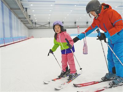 暑假期間,包頭奧運冰雪中心成為避暑好去處。李強 攝