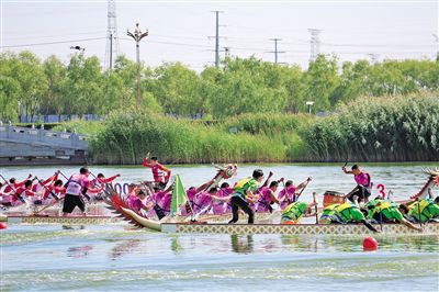 7月21日,2025全國(guó)民族民間龍舟公開賽在巴彥淖爾市磴口縣火熱進(jìn)行,來自全國(guó)各地12支龍舟隊(duì)的300余名運(yùn)動(dòng)員同臺(tái)競(jìng)技。磴口縣被譽(yù)為“百湖之鄉(xiāng)”,十多年來,連續(xù)成功舉辦多次龍舟賽事,已完成相關(guān)賽事及配套設(shè)施專業(yè)化建設(shè),并成為首個(gè)“全國(guó)民族龍舟運(yùn)動(dòng)基地”。記者 薛來攝