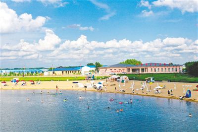 7月28日,游客在興安盟烏蘭浩特市烏蘭哈達鎮高根營子嘎查的神駿灣生態體驗區游玩,樂享夏日時光。近年來,當地將鄉村旅游從單一觀光模式向休閑、沉浸體驗模式轉變,對原有的廢棄沙坑進行改造,打造了神駿灣生態體驗區,運營至今,累計接待游客50萬人次,旅游總收入600余萬元,并帶動了周邊農牧民就業,助力鄉村振興。記者 王曉博攝