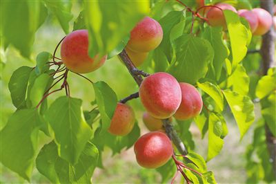 在昂泰生態(tài)園家杏采摘區(qū),一顆顆黃澄澄、紅潤潤的家杏掛滿枝頭,個大飽滿、色澤鮮艷,讓人垂涎欲滴。前來采摘的游客們穿梭在杏林中,將一顆顆成熟的杏果采摘下來,放入布兜內(nèi),最后過秤交費。