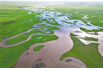 8月的呼倫貝爾大草原·莫爾格勒河景區(qū),老舍先生筆下的“天下第一曲水”蜿蜒曲折,如一條飄逸的綢帶在廣袤的草原上舞動,河水在陽光的照耀下波光粼粼,與藍天白云綠草地構成了一幅絕美畫面。記者 王智華攝