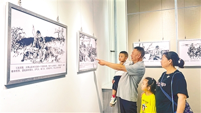 8月15日,呼和浩特市民在參觀大青山抗日游擊根據地故事紅色連環畫展。為紀念中國人民抗日戰爭暨世界反法西斯戰爭勝利80周年,大青山抗日游擊根據地故事紅色連環畫展自8月14日起在呼和浩特市美術館青城公園展廳、呼和浩特雕塑藝術館、武川縣新時代文明實踐中心同步展出,200余幅連環畫生動再現了大青山抗日游擊根據地軍民同心、團結抗敵的歷史場景,本次展覽將持續至9月7日。記者 孟和朝魯攝