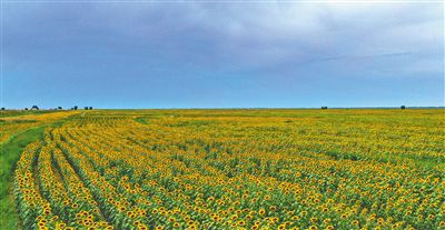 初秋,鄂爾多斯市杭錦旗吉日嘎朗圖鎮S316道路兩側的13萬畝向日葵競相綻放。近年來,吉日嘎朗圖鎮不斷拓展“農旅”深度融合發展思路,做強做長一鎮一業、一村一品產業鏈條,以葵花特色種植業、休閑農業、鄉村旅游為重點,初步形成了集葵花種植、加工、銷售、觀光旅游為一體的一二三產業融合發展的產業態勢,打造了向日葵產業一體化項目“金色名片”。 記者 王磊攝