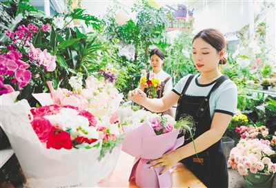 8月27日,呼和浩特市一家花店的工作人員正在打包花束。8月29日是中國傳統(tǒng)七夕節(jié),節(jié)日來臨之際,呼和浩特的大街小巷彌漫著甜蜜的氣息,“浪漫經(jīng)濟”逐步升溫。記者 孟和朝魯攝