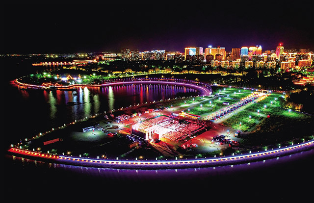 烏海湖畔燈光璀璨、歌聲飛揚。高瑞鵬 攝