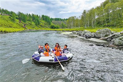 與此同時,在科右前旗巴日嘎斯臺鄉(xiāng)水庫村的興安圣湖旅游度假區(qū),另有一番熱鬧景象。游客搭乘觀光小火車穿行于郁郁蔥蔥的樹林,草木的清香撲面而來。“天氣晴朗又涼快,玩得特別開心,希望下次還能來!”來自天津的小游客撒宇蒴與家人共度歡樂時光。
