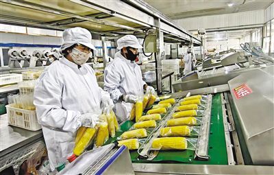 來(lái)到加工車間,真空包裝生產(chǎn)線正在高效作業(yè)。該技術(shù)將鮮食玉米的保鮮期延長(zhǎng)至12個(gè)月,徹底突破季節(jié)限制。“目前我們每天可處理鮮玉米14萬(wàn)穗,其中速凍玉米10萬(wàn)穗、真空包裝4萬(wàn)穗,全部通過(guò)有機(jī)認(rèn)證。”生產(chǎn)負(fù)責(zé)人譚寶龍介紹:“從采收至成品共設(shè)18道工序,嚴(yán)格執(zhí)行國(guó)家食品安全標(biāo)準(zhǔn)。”