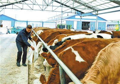 科右前旗“曉景計(jì)劃”人才陳立新正在合作社給肉牛喂飼料。