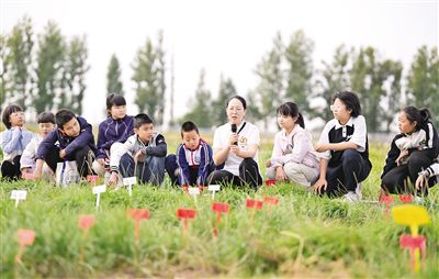 9月21日,科研人員給小朋友介紹試驗田內的植物生長習性和價值。當日,中國農業(yè)科學院草原研究所在位于呼和浩特市的沙爾沁農牧交錯區(qū)試驗科普示范基地開展了以“保護種質資源多樣性 享美好生活”為主題的國家農作物種質資源庫(圃)科普開放日活動。活動通過現(xiàn)場參觀、專題講解、標本制作和互動交流等方式向社會大眾科普農作物種質資源基礎知識,展示種質資源保護利用成果。記者 孟和朝魯攝