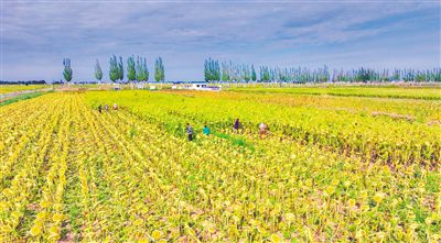 金秋時(shí)節(jié),鄂爾多斯市杭錦旗吉日嘎朗圖鎮(zhèn)14萬(wàn)畝葵花正式進(jìn)入收割期,集中連片滿眼金黃的葵花與辛勤收割的農(nóng)民共同構(gòu)成了節(jié)日期間一道豐收的亮麗風(fēng)景。記者 王磊攝