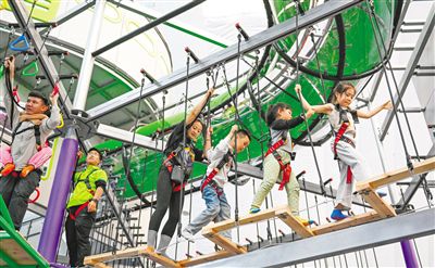 10月5日,家長陪伴孩子開心玩耍。當日,呼和浩特市大黑河軍事主題公園人流如織,“逐光原野運動樂園”憑借寓教于樂的親子游項目,吸引眾多家庭前來游玩,日均接待游客近3000人,成為青城文旅活動矩陣中極具特色的親子打卡地。記者 王磊攝