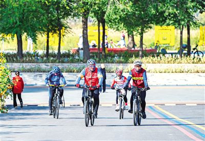 10月10日,騎行愛好者在包頭市賽汗塔拉城中草原一邊騎行,一邊欣賞秋景。“賽汗塔拉”蒙古語意為“美麗的草原”,是全國唯一、亞洲最大的城中草原,吸引不少市民游客前來散步休閑、欣賞美景。記者 孟和朝魯 攝