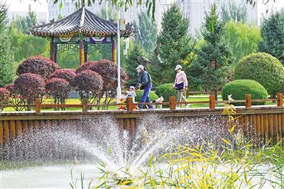 10月11日,呼和浩特市草原絲綢之路文化公園秋意正濃,不少市民趁著好天氣前來(lái)漫步賞景。近年來(lái),呼和浩特全力推進(jìn)“美麗青城”“公園城市”建設(shè),截至目前,首府建成區(qū)綠地率達(dá)41.13%、綠化覆蓋率43.95%、人均公園綠地面積17.06平方米,三大核心綠化指標(biāo)均達(dá)到國(guó)家生態(tài)園林城市標(biāo)準(zhǔn)。記者 王磊 攝