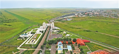 遠觀滿洲里中俄公路口岸,建筑錯落、車流穿梭,周邊草原廣袤,口岸的繁忙與開闊之景盡收眼底。記者 李新軍攝