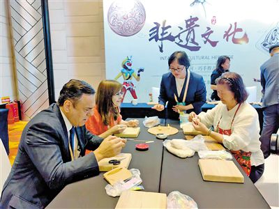 外賓在第五屆中蒙博覽會2025年國家向北開放重要橋頭堡智庫論壇非遺文化展區體驗。記者 李永桃攝