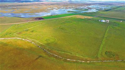 航拍鏡頭下的黑山頭古城遺址。黑山頭古城遺址位于呼倫貝爾市額爾古納市黑山頭鎮西北約10公里的額爾古納河河谷平原上,始建于遼代,是內蒙古東部地區現存時代較早、保存完好、規模較大的重要城址之一,為第五批全國重點文物保護單位。記者 王智華攝