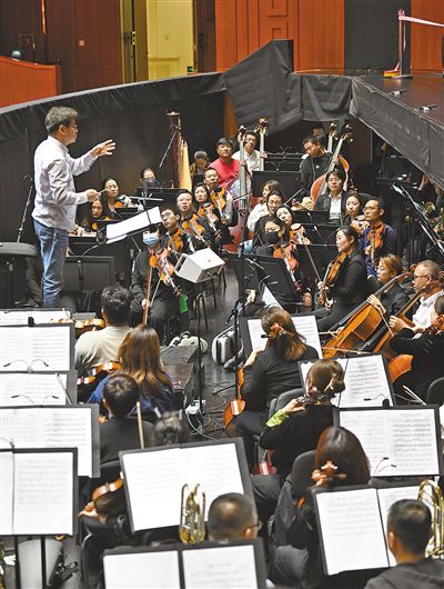 聲樂演員和交響樂團配合,對重點唱段排練。
