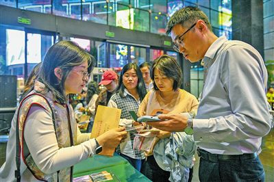 觀眾排隊領取歌劇《江格爾》文創(chuàng)產(chǎn)品。