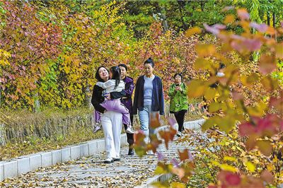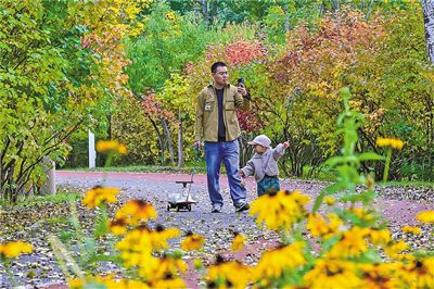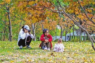 深秋的呼和浩特市扎達蓋公園內層林盡染、秋色正濃。紅、黃、綠等繽紛色彩交織的林木花草間,市民游客們漫步賞秋、拍照打卡,盡享這份獨屬于秋日的愜意與浪漫。記者 王曉博攝