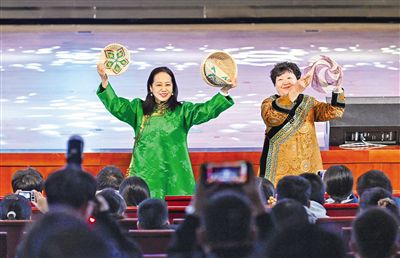 十月二十六日,來自內蒙古的非物質文化遺產代表性傳承人現場展示非遺文創產品。記者 王磊攝