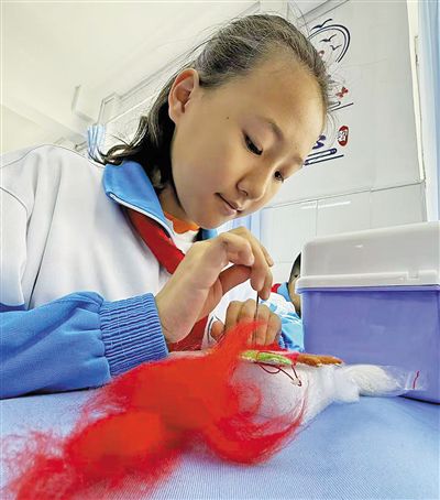 如今,羊毛氈工坊已成為學校的文化名片。教學樓走廊設置專屬展區,掛滿學生的創意作品;學校還定期舉辦相關活動,邀請家長、社區居民參觀,讓羊毛氈技藝走出校園。文化節上,學生制作的羊毛氈掛件、杯墊等實用作品廣受好評,不少家長感嘆“老手藝在孩子手里有了新花樣”。