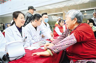 10月29日,醫生在內蒙古鄂爾多斯市神華康城社區為社區居民義診。 新華社發