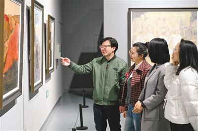 11月6日,觀眾在內蒙古美術館觀看美術作品。當日,“藝象 北疆”—— 吳迪油畫作品展在內蒙古美術館開展。本次展覽集中呈現了畫家吳迪歷經5年精心籌備的130幅油畫精品,作品既生動勾勒出北疆深厚的歷史底蘊與獨特的人文風貌,也鮮活展現了新時代內蒙古在生態保護、社會發展等領域的嶄新圖景。記者 王磊攝