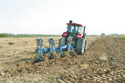 巴彥淖爾市臨河區(qū)城關(guān)鎮(zhèn)萬(wàn)豐村正在深耕秋收后的土地。