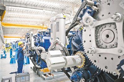 近日,在包頭市明陽新能源裝備制造產業園,工作人員正在組裝風力發電機。該產業園是明陽集團打造的首個“燈塔工廠”,通過柔性脈動生產線,整機裝配耗時從3天縮短至4個小時,具備年產1500臺套風電整機的能力。包頭市依托明陽集團等“鏈主企業”的磁極效應,構建風電裝備全產業鏈格局。記者 孟和朝魯攝