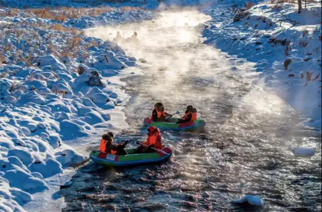在-40℃環境下阿爾山依托不凍河地質特色,打造推出極寒漂流體驗業態,讓游客在霧氣騰騰中感受"冰火兩重天"的北疆奇觀。