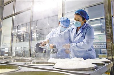 訥日態乳制品有限責任公司工人正在制作奶皮子。