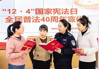 12月4日,呼和浩特市玉泉區公安分局興隆巷派出所民警為社區居民講解憲法知識。記者 王磊 攝