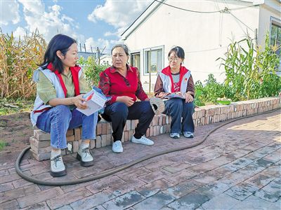 紅十字會(huì)工作人員對(duì)白內(nèi)障患者進(jìn)行術(shù)后回訪。